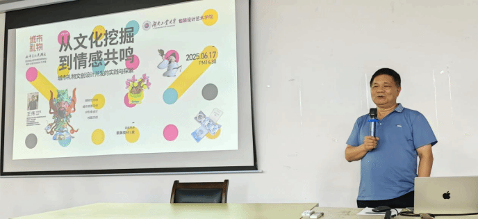 在首个主题分享“从文化挖掘到情感共鸣——城市礼物文创设计开发的时间与探索”中,王伟副教授凭借工作室近几年的丰富案例,深入剖析了城市礼物文创设计的关键要素。他强调,文化是文创设计的根基,美学赋予其独特魅力,功能确保实用性,趣味增添吸引力,而情感则是连接产品与消费者的桥梁。通过一个个生动的案例,王伟副教授展示了如何将这五个要素有机融合,打造出既有文化内涵又深受市场欢迎的城市礼物文创产品,为在场师生提供了宝贵的实践经验和创新思路。