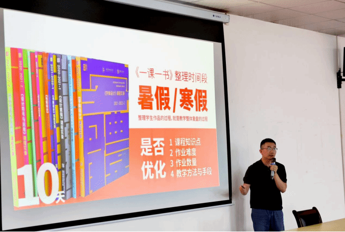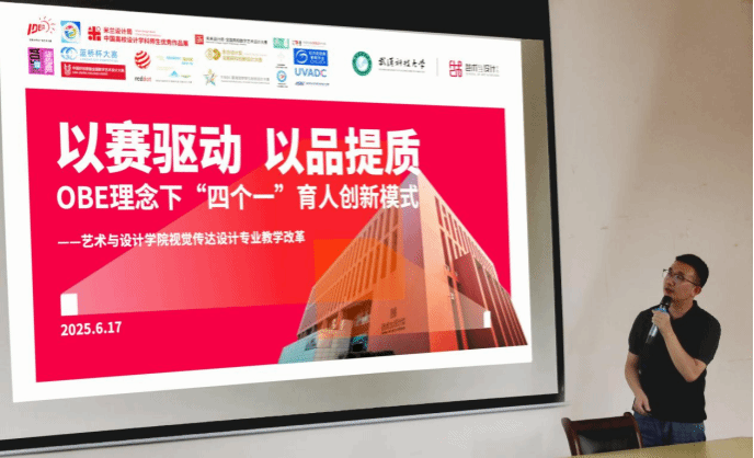随后,王伟副教授作了题为“OBE理念下‘四个一’育人创新模式”的分享。他围绕专业建设、课程建设、学科竞赛和教学改革等一体化模式展开探索,详细阐述了“一课一赛”“一课一书”“一课一展”“一人一品”的具体内涵和实施成效。这一创新模式将教学与实践紧密结合,激发了员工的创新能力和实践精神,为设计学科的课程教学改革提供了全新的思路和方向。王伟副教授的分享内容丰富、逻辑清晰,赢得了在场师生的阵阵掌声。