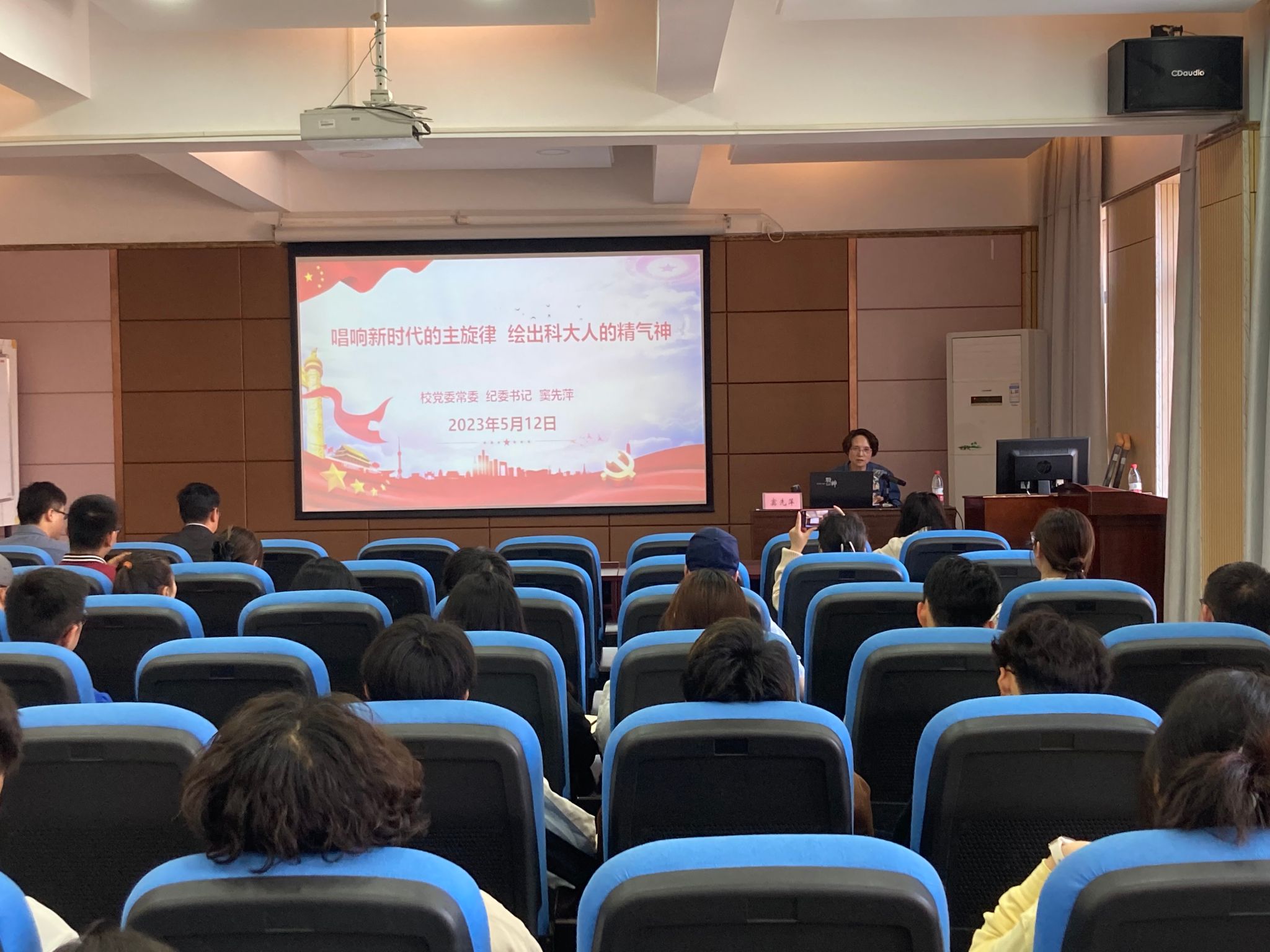 本网讯(通讯员 刘砚臣)5月12日下午14:00,教七308报告厅中,Beats365唯一官网入口党委常委、纪委书记窦先萍同志于70308讲授“唱响新时代的主旋律,绘出科大人的精气神”的主题教育党课,公司员工会骨干代表积极参与到本次理论学习。