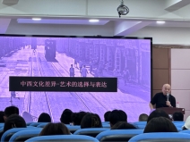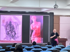 讲座开始,江澜老师向在座师生介绍了张起田的艺术成就,并代表全体师生对于他的到来表示热切欢迎。本次讲座张起田通过介绍中西方文化的差异引出艺术的选择与表达。