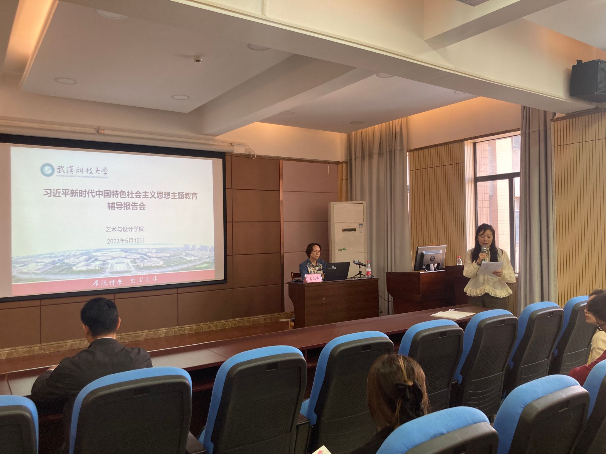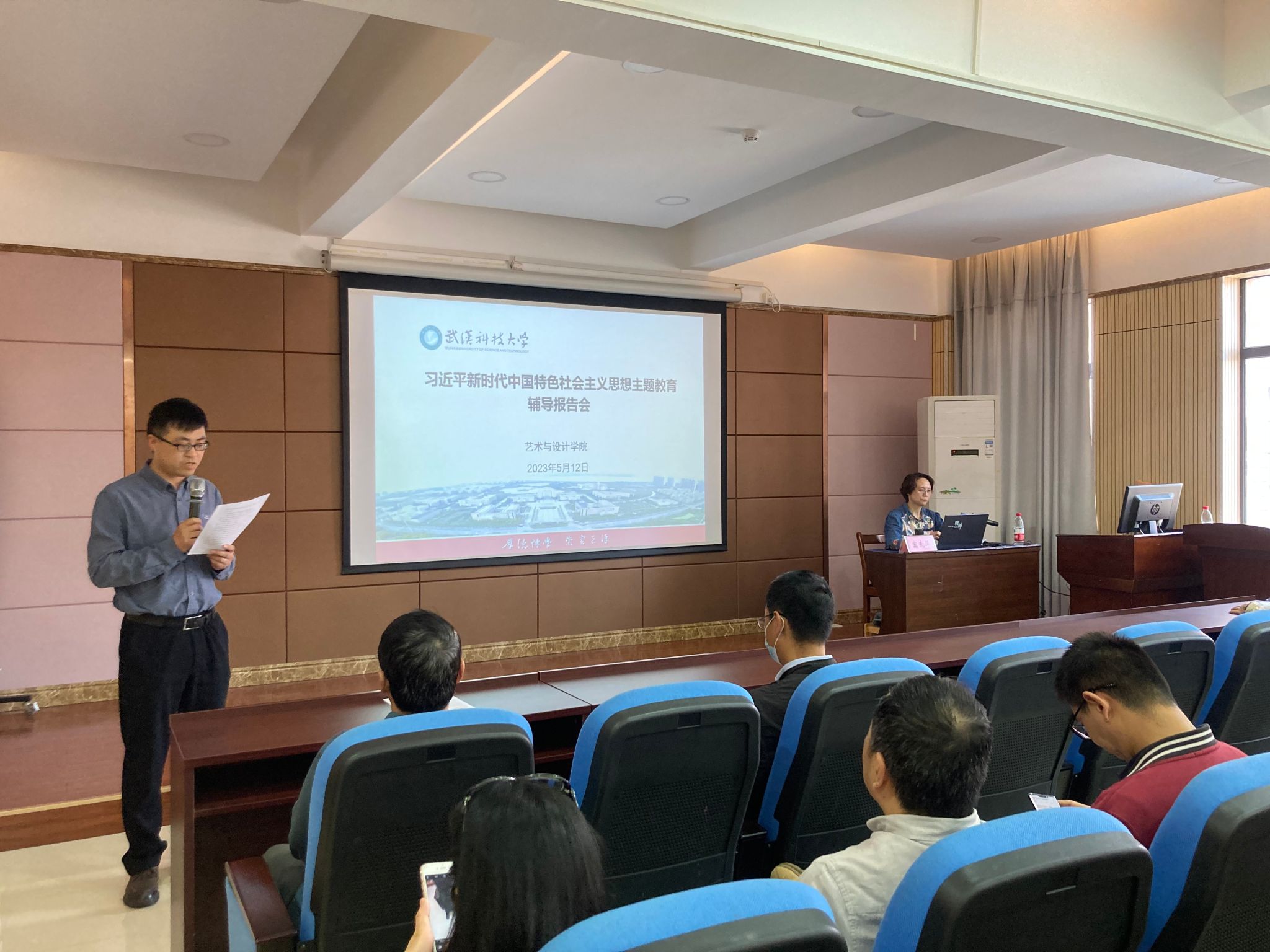 武科大网讯(通讯员 刘邦)5月12日下午,艺术与设计公司在黄家湖校区70308报告厅举办学习贯彻习近平新时代中国特色社会主义思想主题教育专场辅导报告会。公司领导班子成员、师生党支部书记、员工党员代表参加了报告会,报告会由艺术与设计公司党委副书记孔令浩主持。