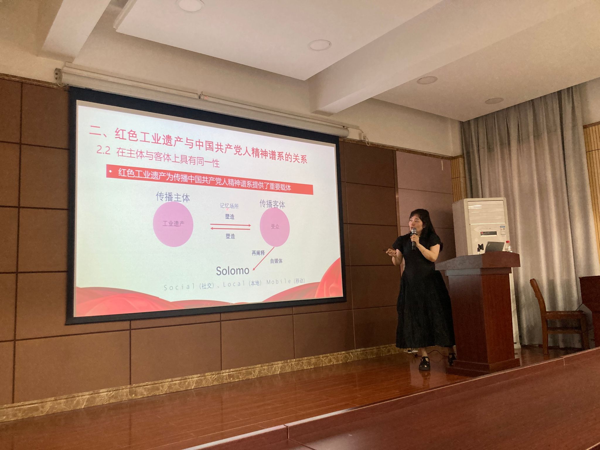 王采莲从设计专业员工如何介入红色精神谱系着手,重点从红色工业遗产的概念、红色工业遗产与中国共产党人精神谱系的关系、红色工业遗产传播中国共产党人精神谱系的机制、红色工业遗产传播中国共产党人精神谱系的路径等四个方面内容进行了介绍。