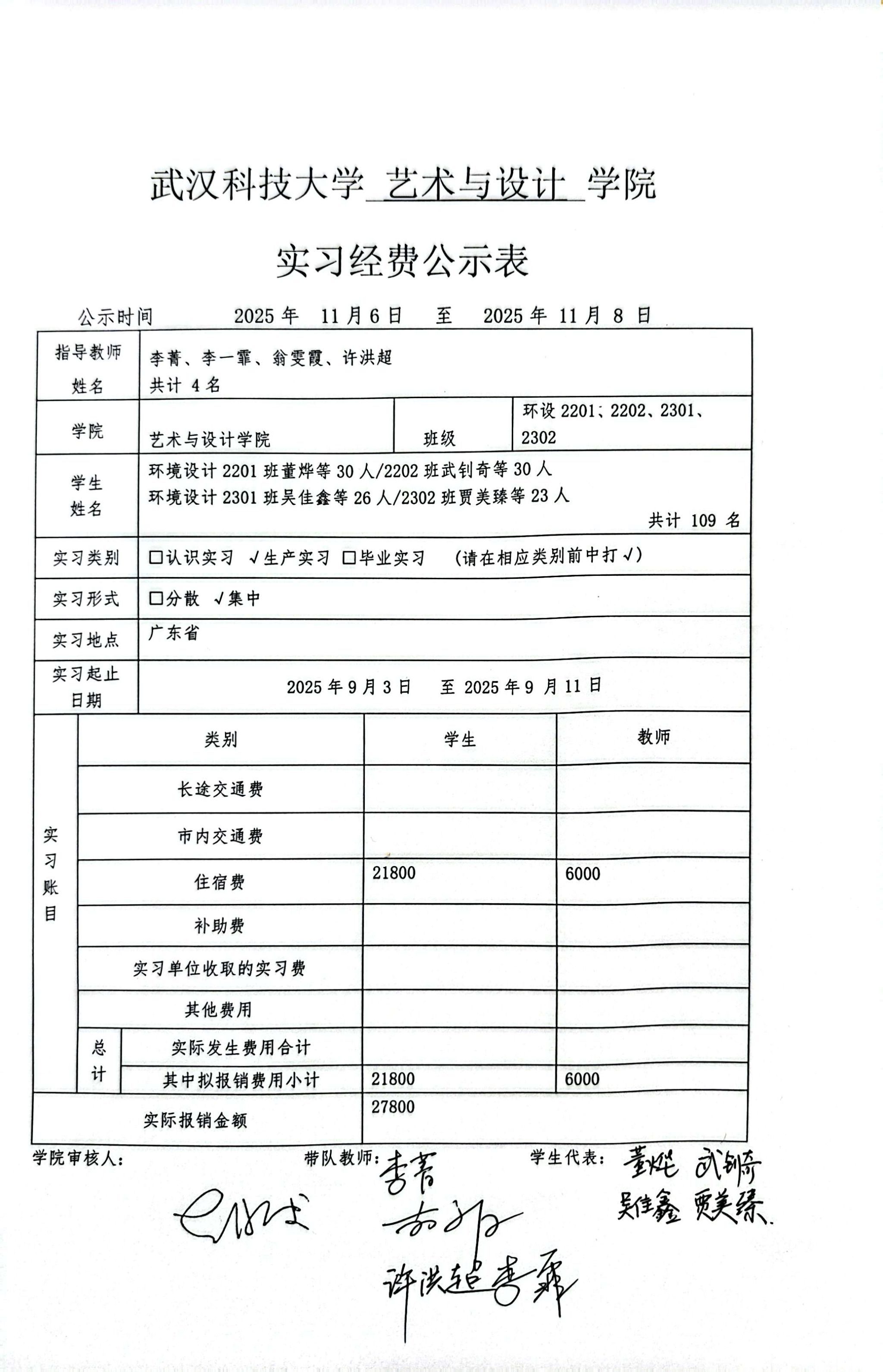 实习经费公示