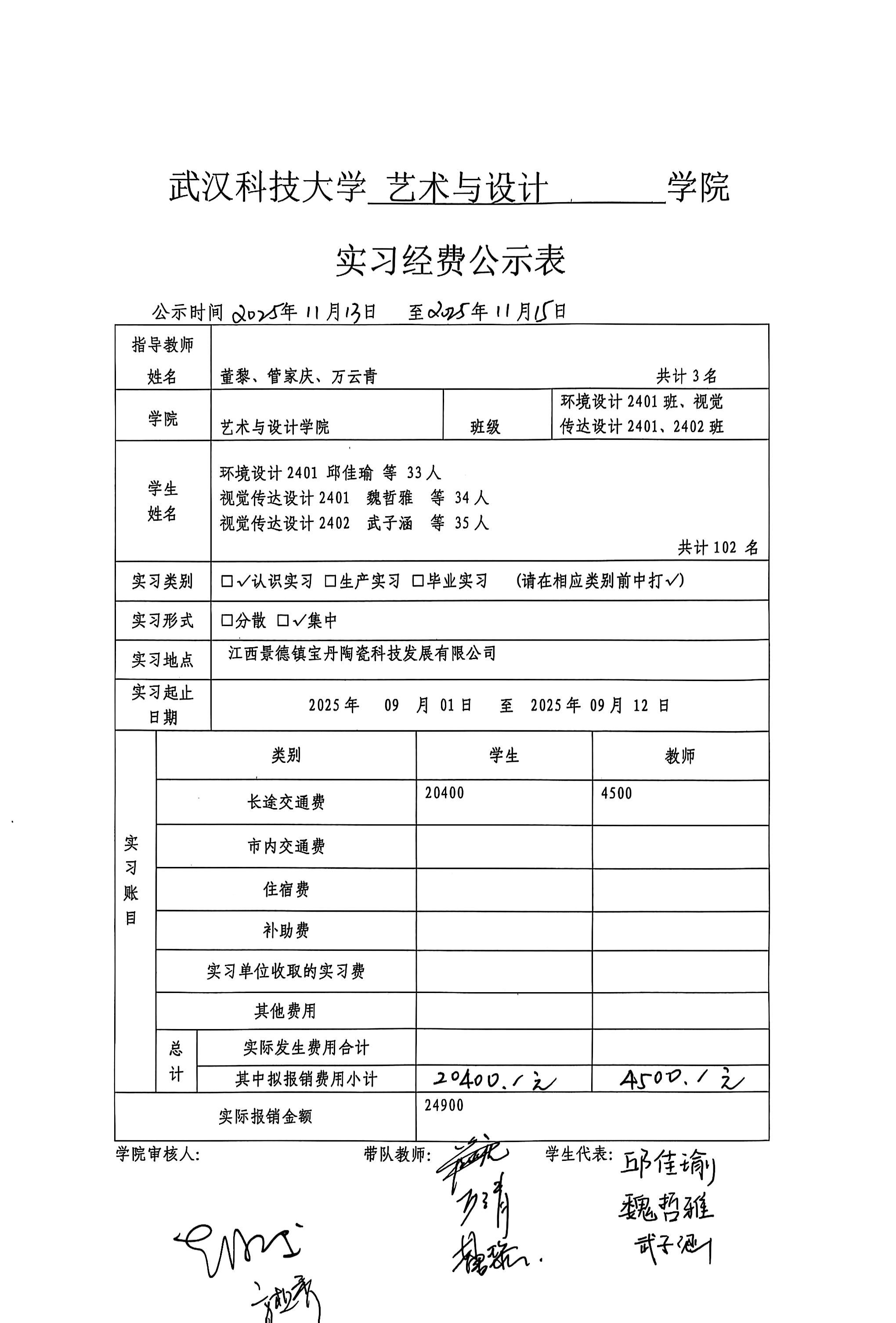 实习经费公示