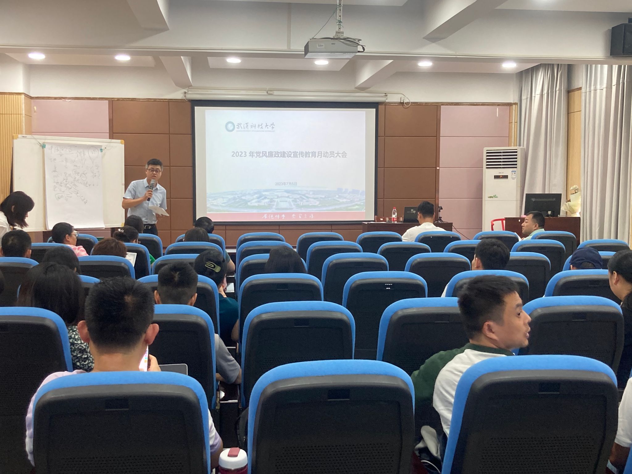 武科大网讯(通讯员 刘邦)7月5日,我院在70308报告厅召开了2023年党风廉政建设宣传教育月活动动员暨警示教育大会。学院领导班子成员、全体教职工及员工党员代表参加了本次大会。大会由学院党委副书记孔令浩主持。