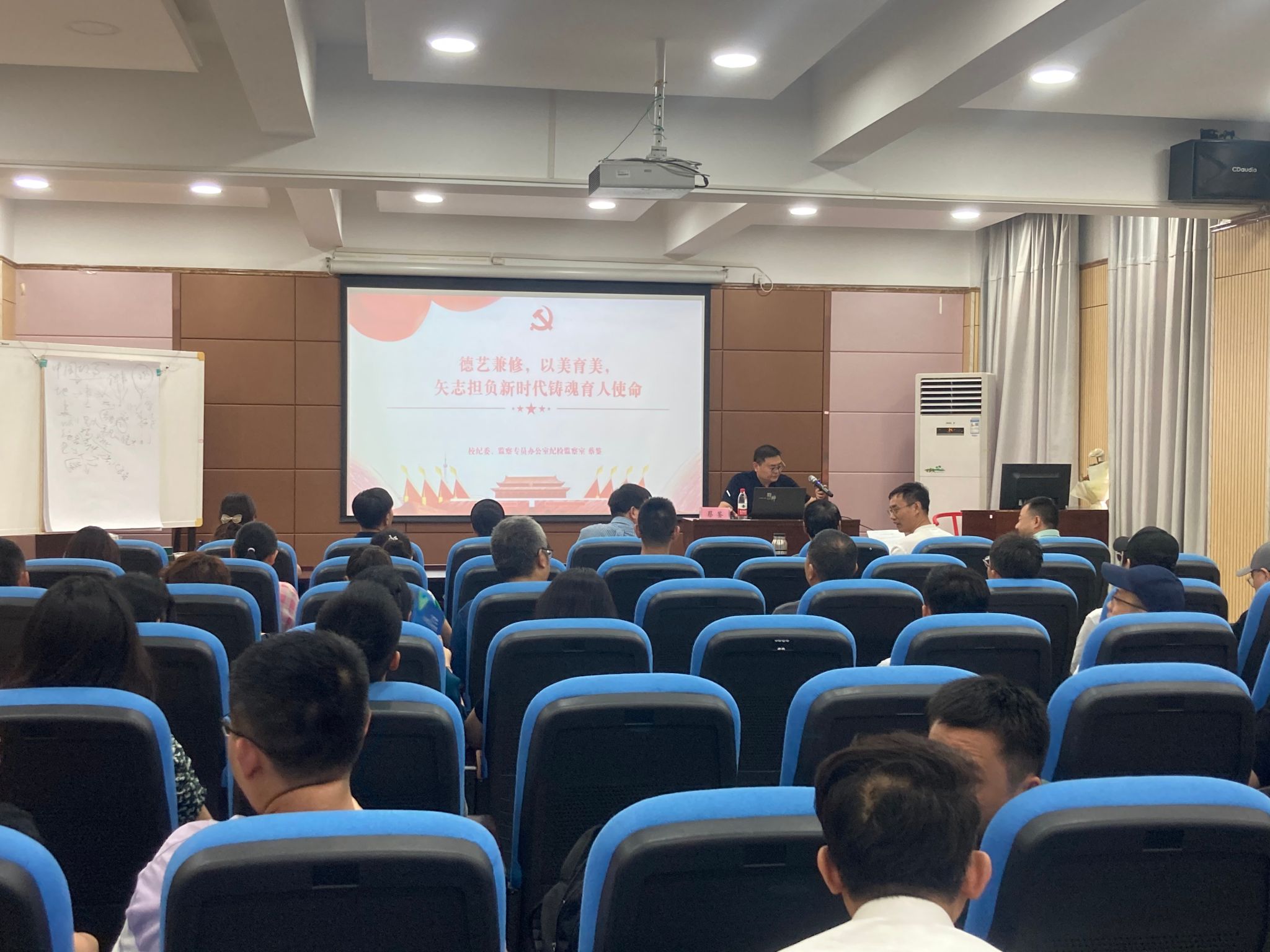 校纪委、监察专员办公室纪检监察室主任蔡鉴以《德艺兼修,以美育美,矢志担负新时代铸魂育人使命》为题,从担立德树人、传道受业重任;树知势明责、遵规守纪榜样;成修身律己、行为世范导师等三个方面向公司师生进行了师德师风廉政主题宣讲。
