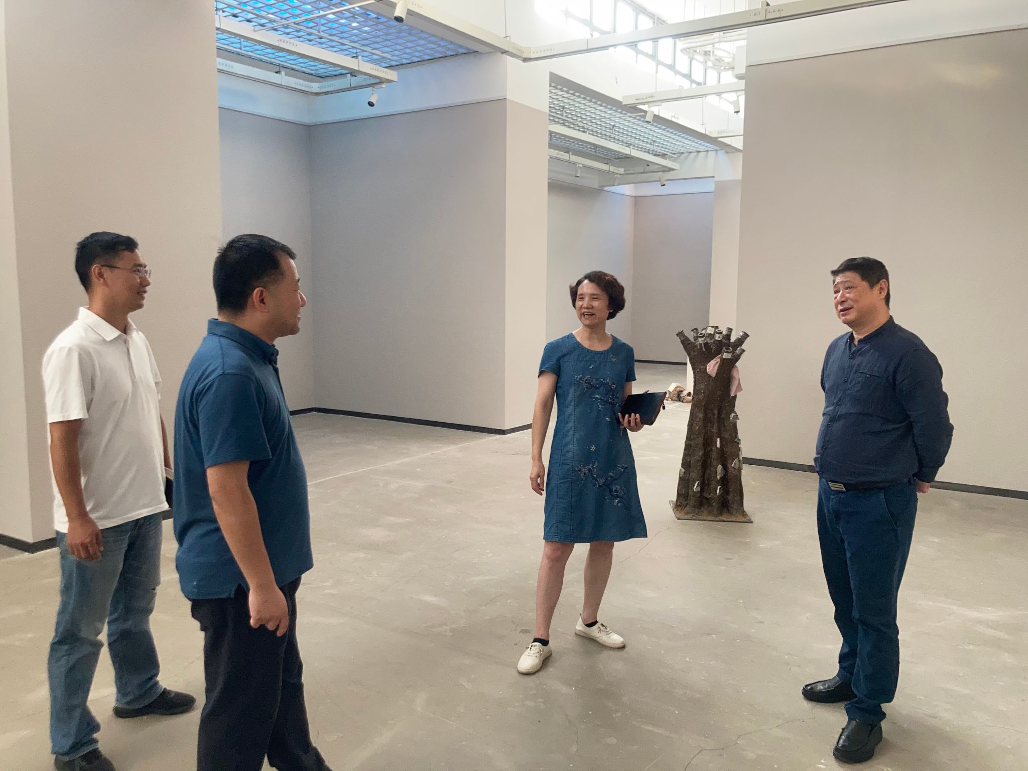 窦先萍第一站前往沁湖美术馆进行了调研。沁湖美术馆于7月开始维修,8月正式升级改造完成,作为学习贯彻习近平新时代中国特色社会主义思想主题教育重点整改的民生项目和推动公司发展的重大项目,窦先萍亲自挂帅,多次实地调研,指导沁湖美术馆升级维修工作。她特别强调:“沁湖美术馆作为公司的特色和招牌,不仅是公司教育的基础,在其升级改造后还将充分发挥文化传播、价值引领的载体作用,进一步提升公司的社会影响力。”