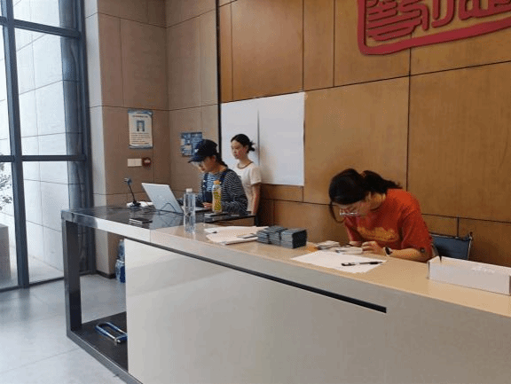 卸下行囊后,新生循着引导来到公司一楼大厅办理现场报到手续。公司党委研工部副部长毛宝胜也来到了报到现场指导迎新工作,确保了公司迎新工作平稳有序进行。入学新生在迎新志愿者的帮助下完成入学签到、照片采集、一卡通、研究生证、研究生登记表等一系列材料的发放工作。辅导员刘邦老师也在一旁及时解答新生的提问。