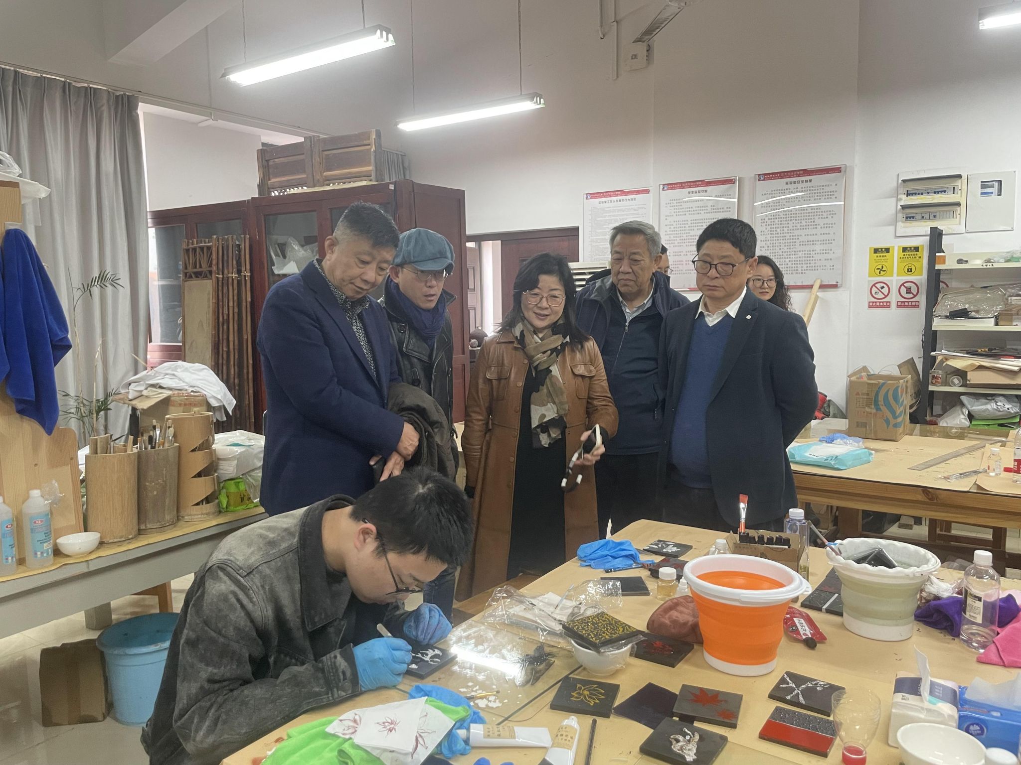 会前,才大颖等人参观了公司沁湖美术馆、艺术与科学研究中心、新农村建设研究中心、工业文化创新研究中心、武汉潮玩设计研究院等科研平台。管家庆带领调研组参观了工艺美术、绘画、设计等多个作品展区。