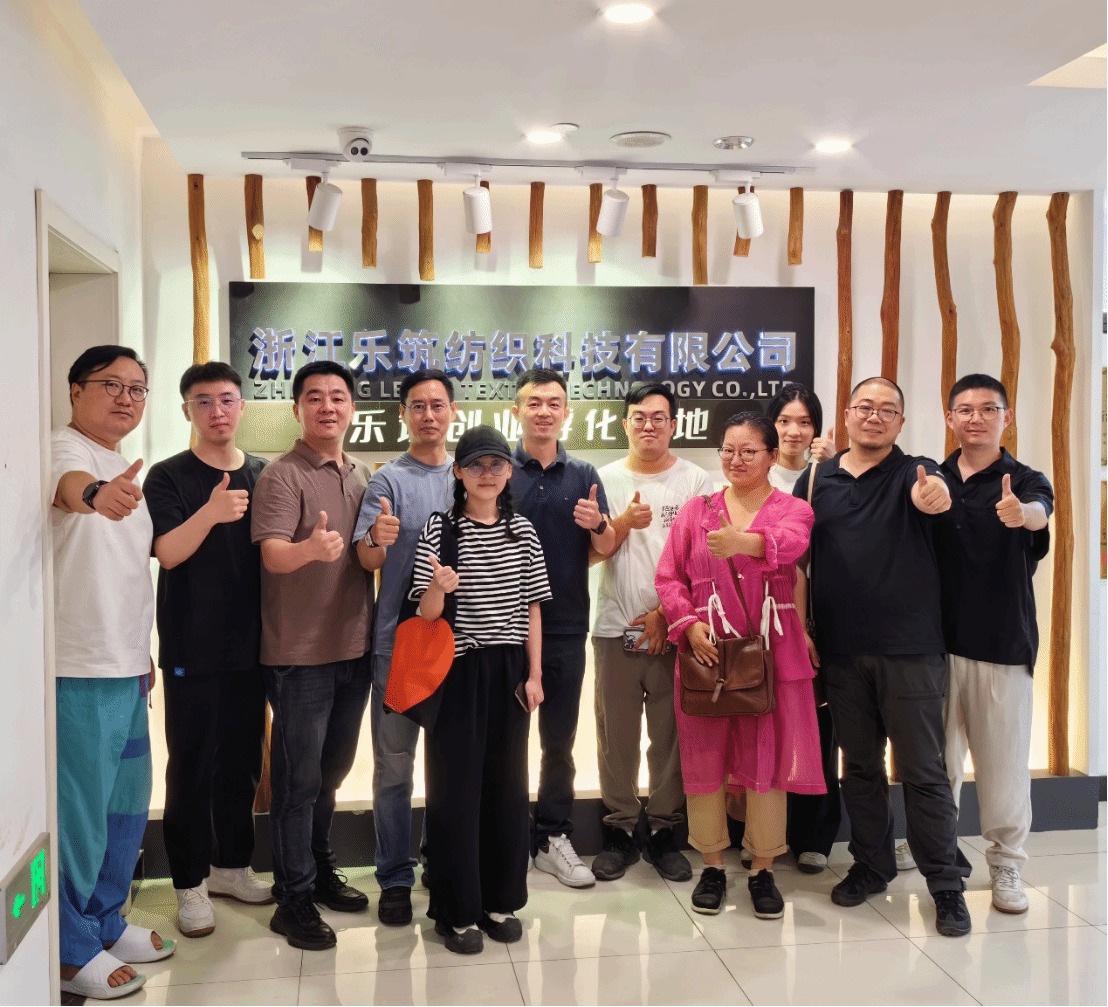 下午3时,团队一行前往浙江乐筑纺织科技有限公司进行访问。这是公司09级退役员工高波于2011年自主创办的科技型企业,主要从事纺织科技的研发及推广、针纺织品批发零售等业务。乐筑纺织凭借其独特的创新能力和敏锐的市场洞察力,在行业内迅速崛起。团队一行参观了公司的生产车间和研发中心,对公司的生产流程和研发实力表示高度赞赏。在座谈会中,双方就纺织品的艺术设计与市场应用、校企合作模式及员工实习就业等问题进行了深入交流,并达成了多项合作共识。