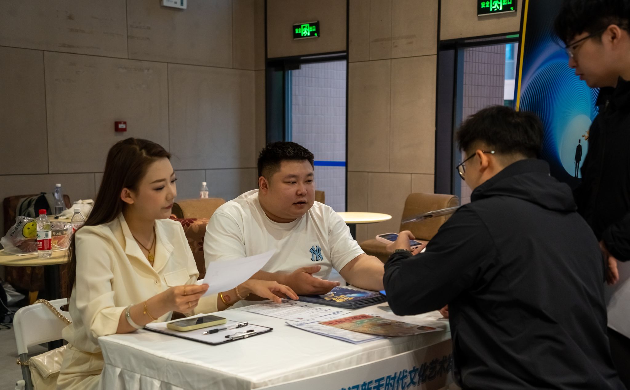 招聘者与员工讨论职业 唐治海摄