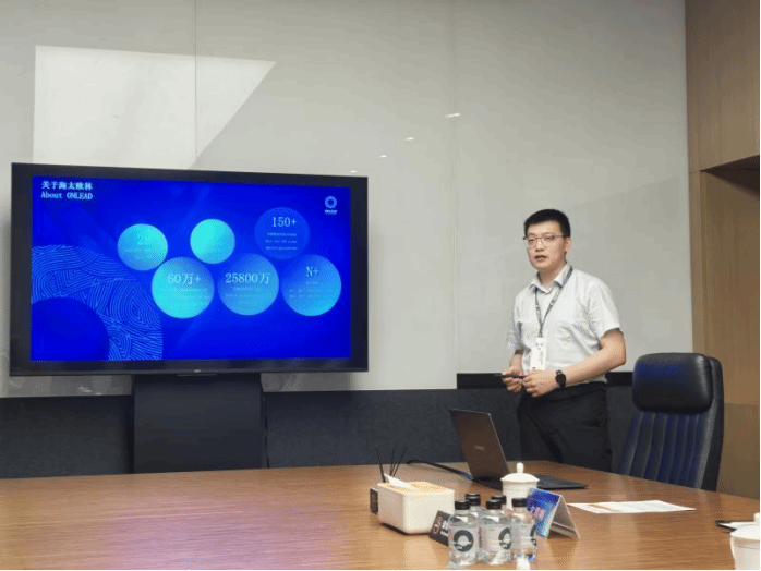 海太欧林集团人力资源部经理宋濮帆详细介绍了集团“无边界学习”人才成长模式,就目前招聘高校毕业生存在的阻碍和困难与郭慧霞书记一行展开交流,希望能够进一步加强在人才支撑、产教融合、学科专业等方面与公司的交流合作。郭慧霞书记感谢此次交流机会的达成,希望双方能在人才建设培养、就业岗位拓展、科研信息交流等方面加强合作,共同促进数字化前景下的人才培养和发展。